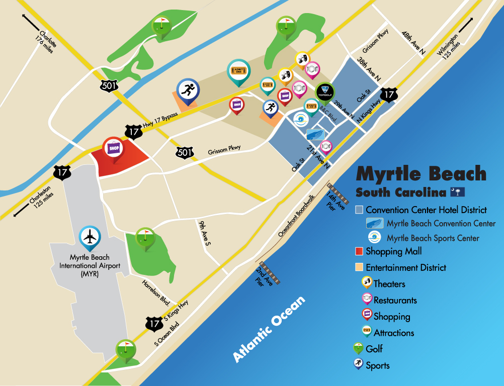 Our city offers great accessibility by interstate and highways as well. Just about 70 miles from Interstate 95, you can drive here easily too. The ease of both air and land travel will ensure your guests arrive ready to enjoy all that conferencing in Myrtle Beach has to offer!